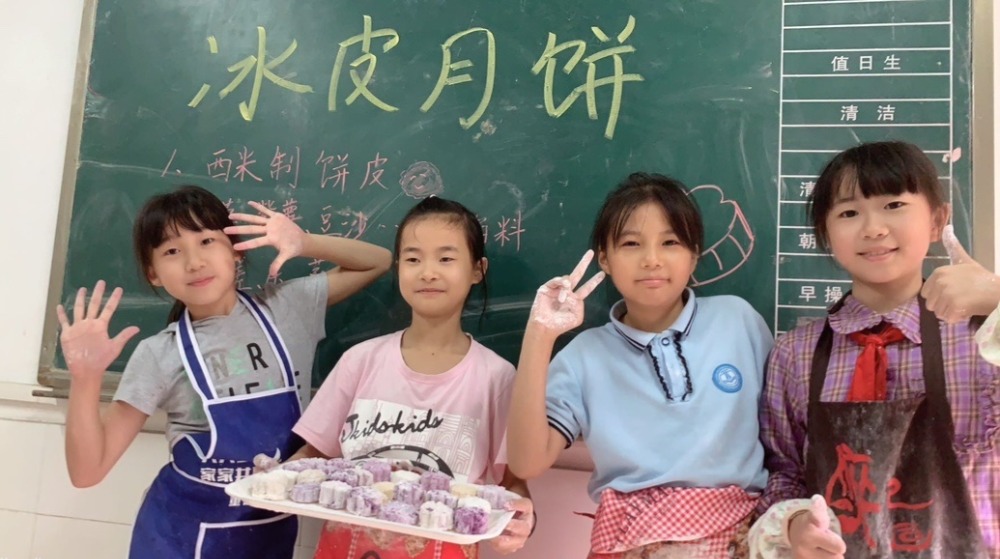 在春节,孩子们学包饺子,写美食日记;在重阳节,孩子们蒸重阳糕,领悟尊老敬老的文化内涵;在中秋节,孩子们制作月饼,创编与中秋美食相关的童谣……在一次次富有“中国味”的课程中,孩子们动手动脑,分组协作,收获成长。目前,该课程已经连续七年在五年级常态化开展,累计1800余名学生参与学习。